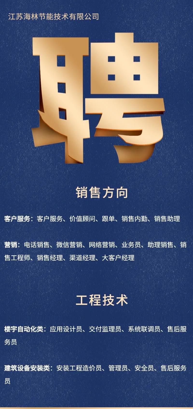 江蘇海林本期熱招職位火熱發(fā)布,我們期待優(yōu)秀的你加入,共同推進公司的發(fā)展進程。