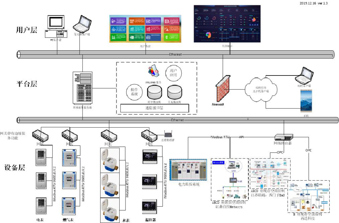其數(shù)據(jù)來源可以是各類智能設(shè)備和數(shù)據(jù)采集器直接獲取的實(shí)時(shí)數(shù)據(jù),或是其它第三方計(jì)量采集系統(tǒng)的數(shù)據(jù)庫,也可以通過Modbus通信、BACnet通信、OPC等方式與支持對(duì)應(yīng)協(xié)議的計(jì)量采集設(shè)備、計(jì)量采集系統(tǒng)實(shí)時(shí)通訊,自行存儲(chǔ)數(shù)據(jù)。