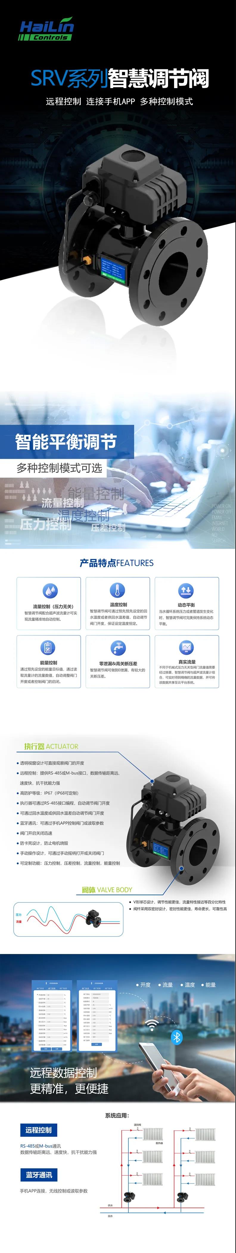海林SRV系列智慧調(diào)節(jié)閥采用RS-485 或 M-Bus通訊,實(shí)現(xiàn)遠(yuǎn)程控制;與手機(jī)APP連接,實(shí)現(xiàn)無(wú)線(xiàn)控制,手機(jī)讀取參數(shù);多種控制模式可選(包括流量控制、溫度控制、能量控壓力控制、壓差控制等);同時(shí)可預(yù)設(shè)控制參數(shù),自動(dòng)調(diào)節(jié)監(jiān)控。