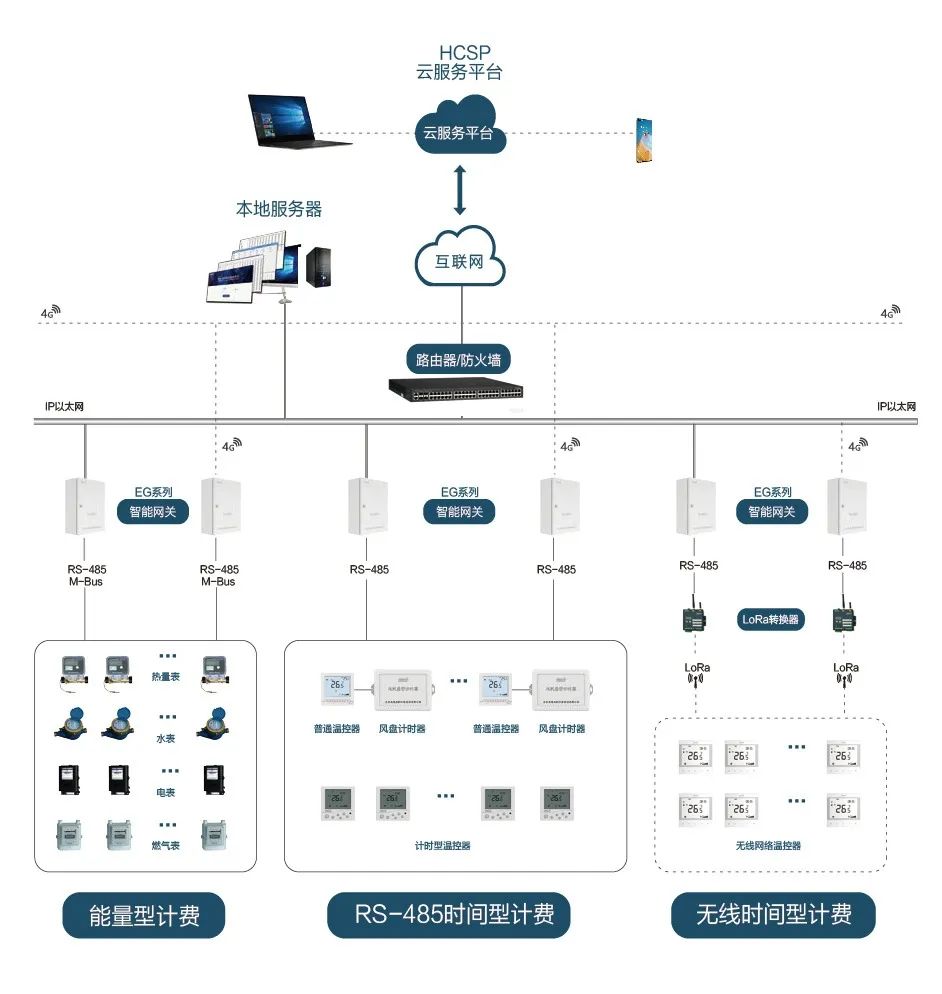 能量型計(jì)費(fèi)方式通過(guò)計(jì)量用戶中央空調(diào)使用能量收取費(fèi)用,通過(guò)供冷、供暖管道中安裝熱量表,直接讀取用戶的計(jì)量數(shù)據(jù);NB-IoT是IoT領(lǐng)域基于蜂窩的窄帶物聯(lián)網(wǎng)的一種新興技術(shù),因NB-IoT自身具備的低功耗廣覆蓋、低成本、大容量等優(yōu)勢(shì),本項(xiàng)目采取NB超聲波熱量表,讓項(xiàng)目安裝省時(shí)省力、高安全、高可靠。為該項(xiàng)目智能管控,合理收費(fèi),做出解決方案。
