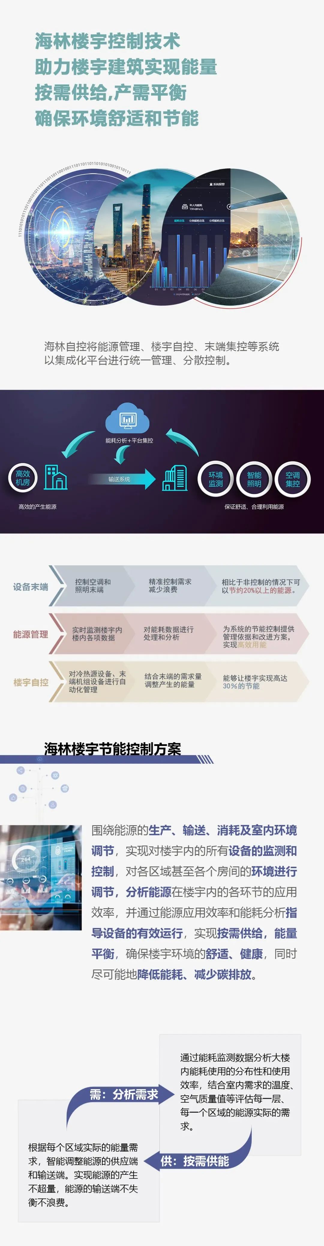 海林自控基于“自動(dòng)控制+AI+IoT”技術(shù)及“樓宇自控+能源管理+微環(huán)境管理”方案,匯聚樓宇自控、能源管理及智能人居三大業(yè)務(wù)及全線產(chǎn)品,建立統(tǒng)一的數(shù)字化能源管理系統(tǒng)平臺(tái),對(duì)建筑內(nèi)的空調(diào)、采暖、新風(fēng)、熱水、燈光、窗簾及溫度、濕度、空氣質(zhì)量和能耗,實(shí)施監(jiān)測(cè)、控制、分析和管理,創(chuàng)建舒適健康和節(jié)能的建筑環(huán)境,同時(shí)實(shí)現(xiàn)節(jié)能降耗,助力建筑樓宇脫碳,促進(jìn)可持續(xù)發(fā)展。