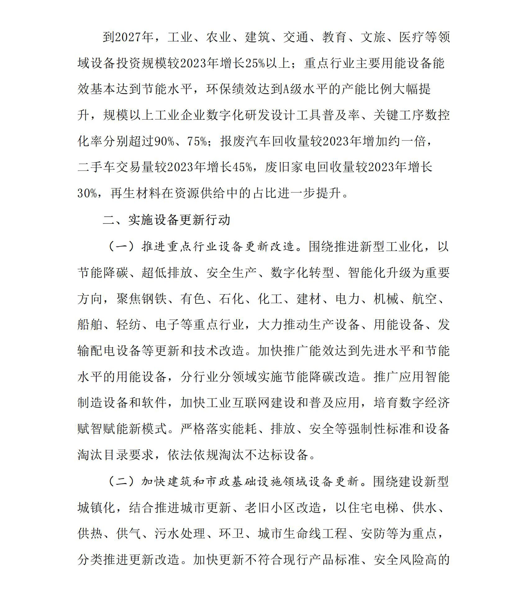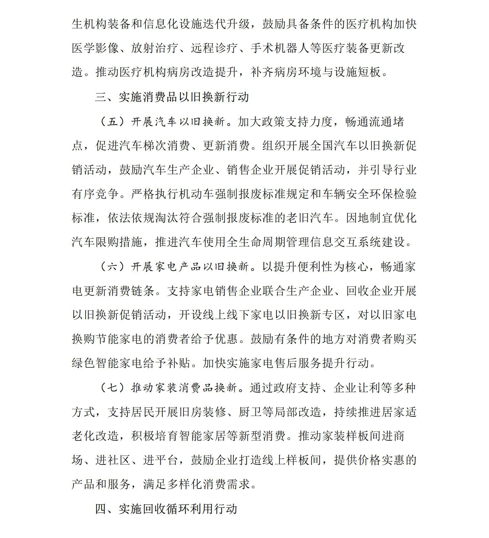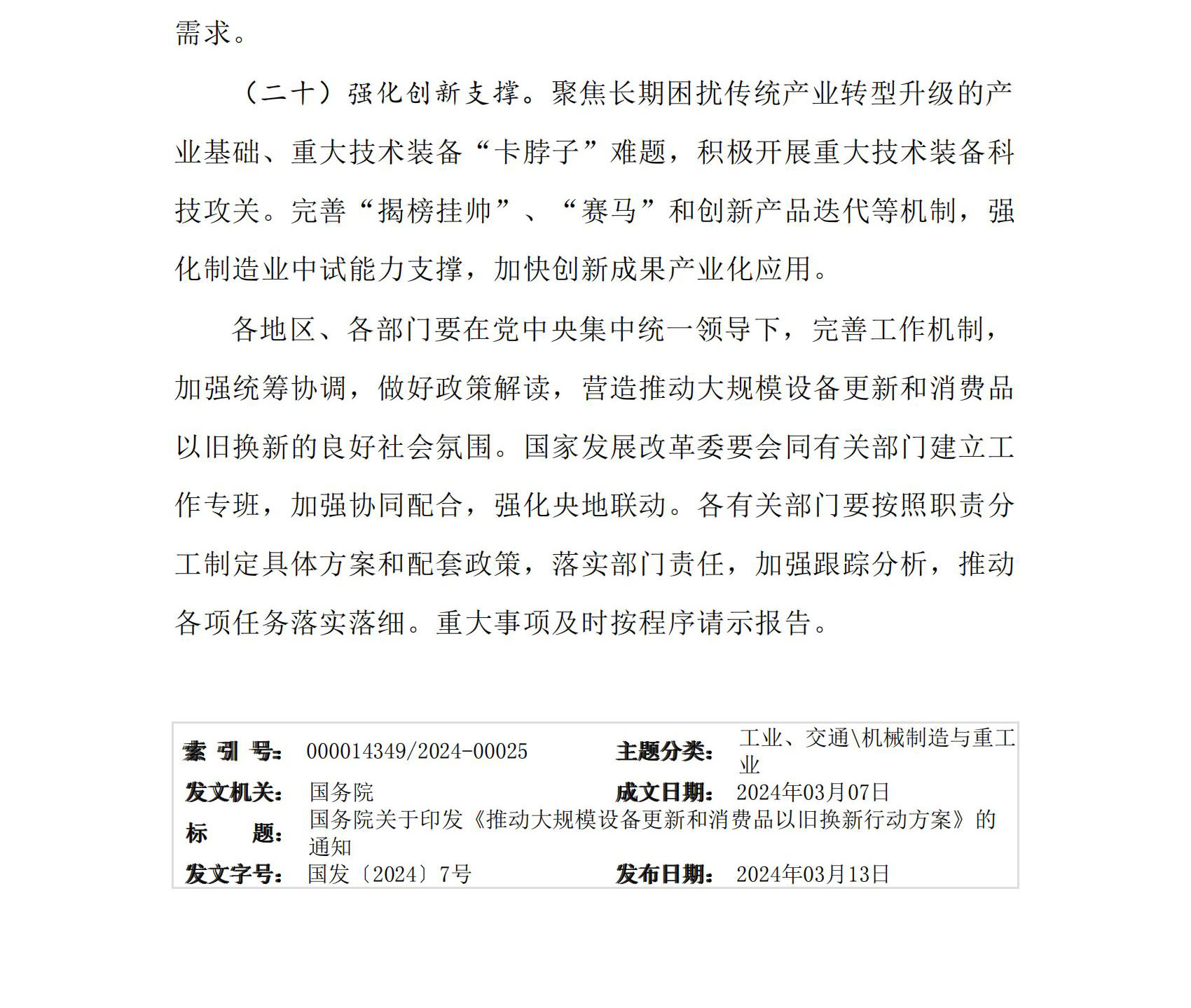 3月13日晚間,國務(wù)院正式印發(fā)《推動大規(guī)模設(shè)備更新和消費品以舊換新行動方案》。
