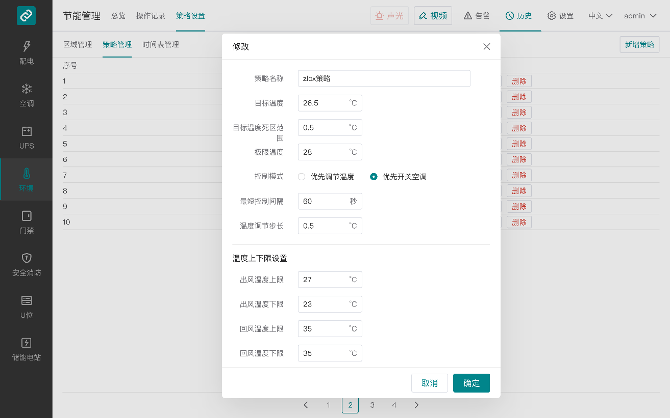 (1)空調(diào)用電的優(yōu)化,在滿足機(jī)房熱負(fù)荷需求、環(huán)境溫度要求的前提下,通過(guò)自動(dòng)調(diào)節(jié)空調(diào)出回風(fēng)溫度設(shè)定、運(yùn)行數(shù)量來(lái)實(shí)現(xiàn)空調(diào)用電的最優(yōu)化。