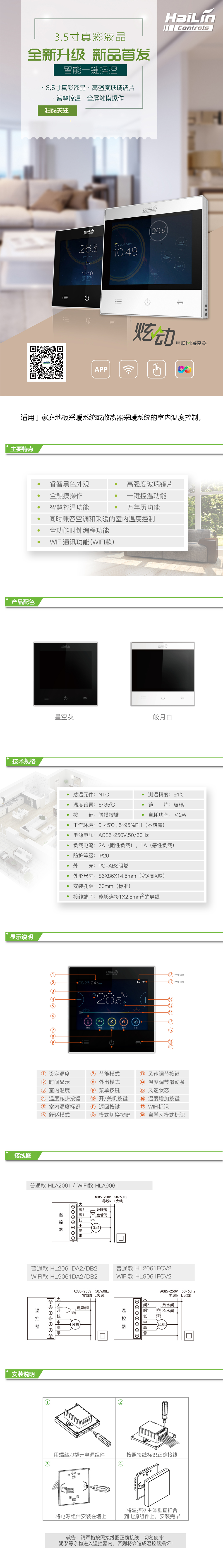 適用于中央空調(diào)風機盤管系統(tǒng)或風管道系統(tǒng),自動調(diào)節(jié)室內(nèi)溫度。炫麗3.5寸真彩液晶屏,全屏觸摸操作,星空灰、皎月白兩種顏色可選,外觀設(shè)計簡約、時尚,表達了最直觀的美。智慧控溫,一鍵操作,具有自學習功能,將智能科技融入舒適生活。