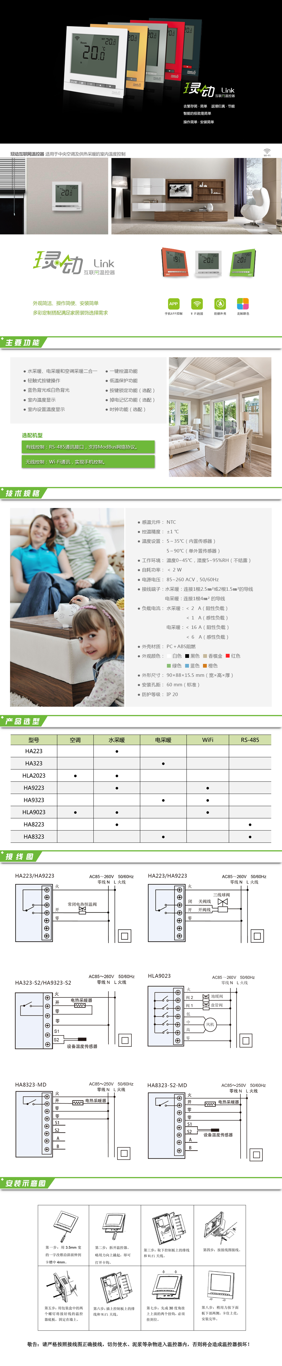 ?動采暖溫控器包括“本地控制、有線控制、無線控制”三種類型,適用于家庭地板采暖系統(tǒng)或散熱器采暖系統(tǒng)的室內(nèi)溫度控制。一體化弧形表面設(shè)計簡潔流暢,多彩定制搭配滿足家居裝飾選擇需求,進口材質(zhì)安全耐候性強,網(wǎng)絡(luò)連接安裝簡單操作便捷,感知靈敏控制精準(zhǔn)。