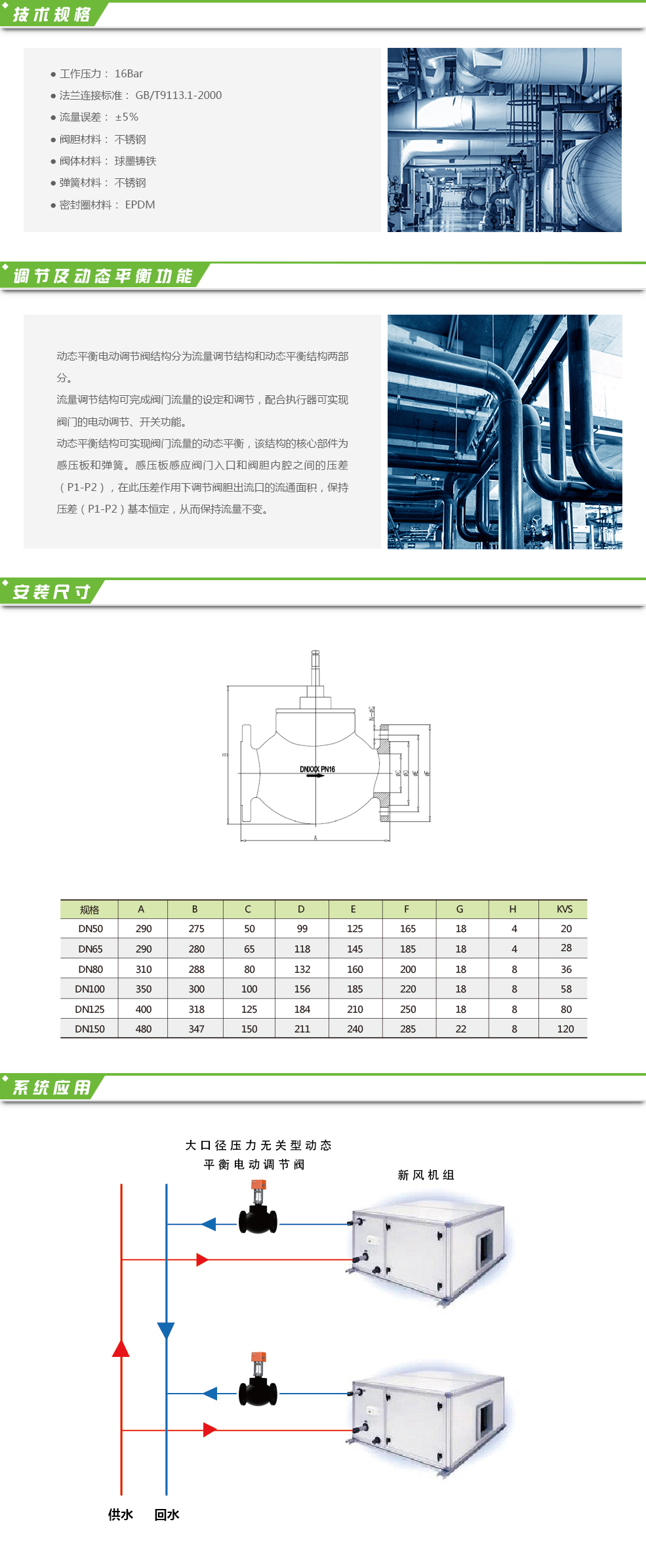 本系列產(chǎn)品集動態(tài)平衡與調(diào)節(jié)功能于一體,根據(jù)流量需求調(diào)整好閥門開度,無論系統(tǒng)壓差如何波動,只要在閥門的工作范圍內(nèi),閥芯即可自動調(diào)整可變流道開度,保持流量恒定不變。該閥門采用新穎獨特的剛性結(jié)構(gòu),徹底克服老舊膜片式閥門的壽命短、調(diào)節(jié)范圍小等缺點。精確校準的閥芯可確保恒定在±5%的偏差范圍內(nèi)。通過動態(tài)平衡功能動態(tài)平衡系統(tǒng)的阻力,保證設(shè)備輸送介質(zhì)流量在一定壓差 ...