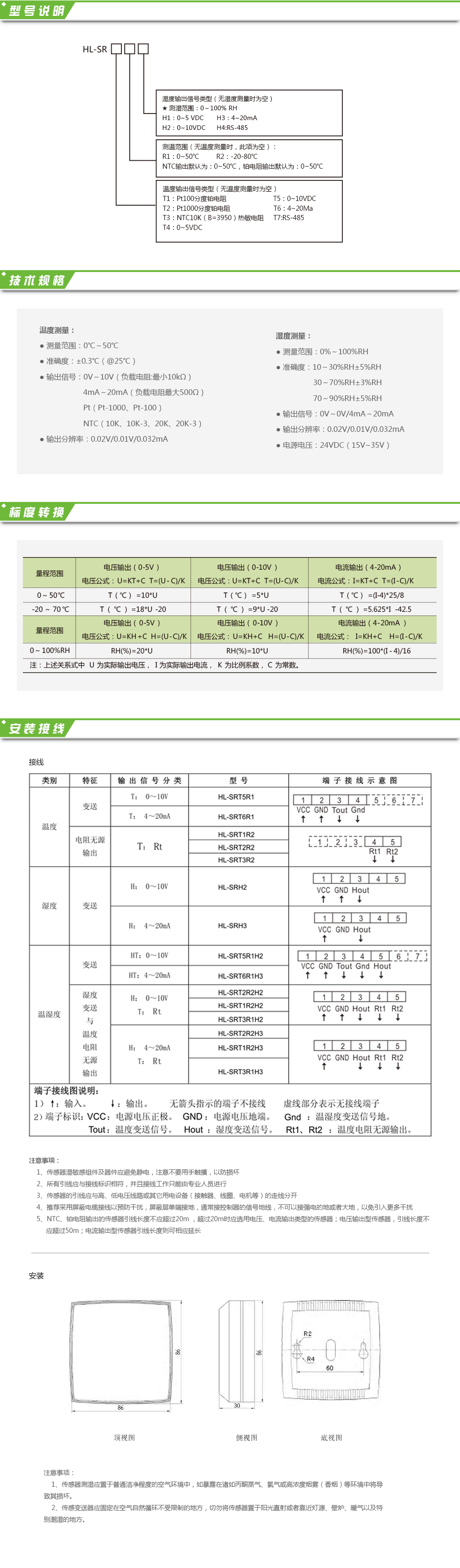 HL-SR系列傳感器廣泛應(yīng)用于樓宇自控領(lǐng)域,主要用于室內(nèi)溫度、濕度測量;溫度輸出可提供 NTC、鉑電阻、電壓、電流等信號類型,濕度輸出可提供電壓、電流等信號類型,可以適應(yīng)各種控制系統(tǒng)的不同要求。