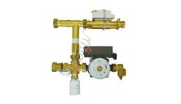 E2505型混水中心能夠?qū)⒛┒说嘏邷毓┧档?。?dāng)采暖末端散熱器與地暖同時存在,熱源供水溫度較高的系統(tǒng)中,將高溫供水與低溫回水混合,通過傳感器與溫控閥調(diào)節(jié)混合比例,達到降低供水水溫目的。